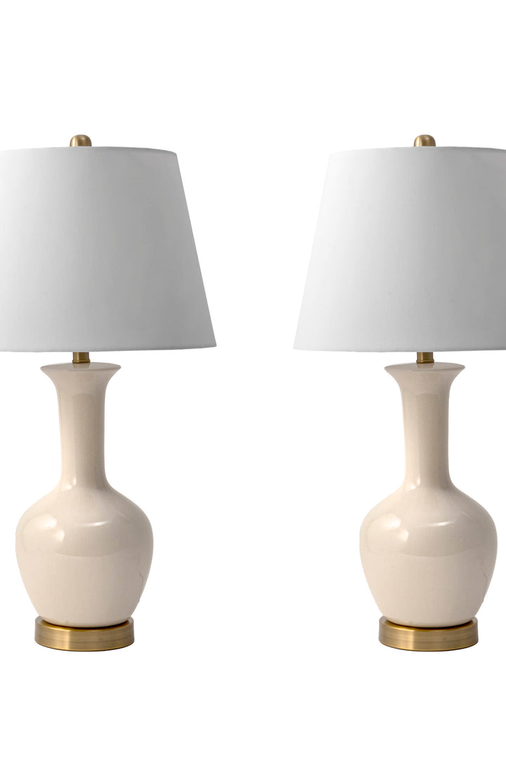 Nothing adds flow to your space more than a pair of table lamps. Soft, gracious shapes of ceramic combined with neutral colors creates clean, simple lines, while the silhouette adds a touch of glam. Pair the two of them together or place them apart to spread its sophisticated look and shining light around your home. Designed with you in mind, Rugs USA provides an LED bulb, allowing your lighting to take center stage effortlessly.<br><br><b>Dimensions</b><ul>