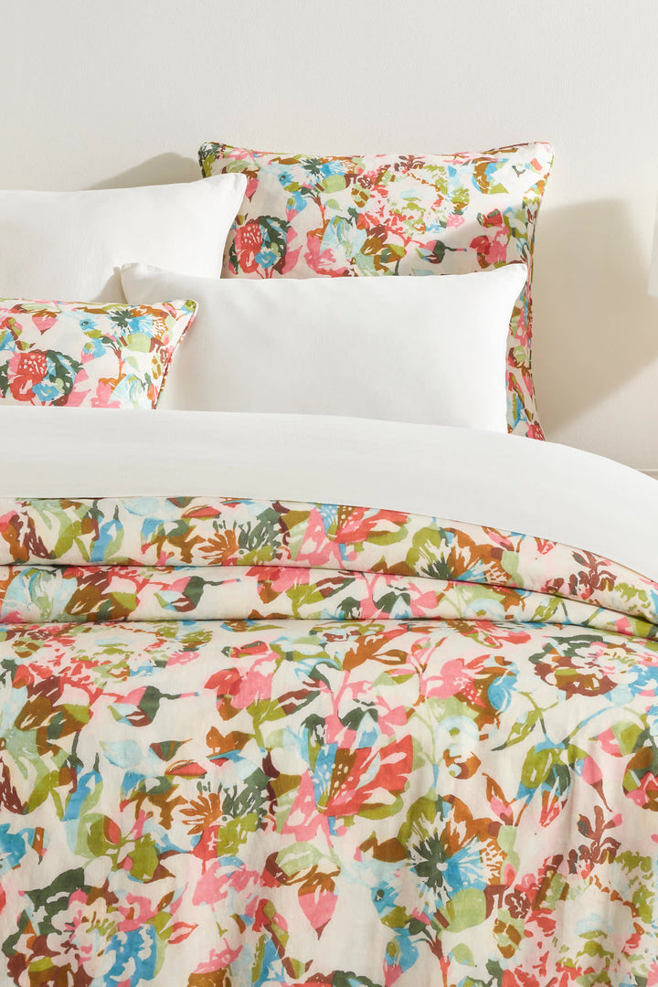 Add effortless style to your bed with this bold, abstract floral duvet cover inspired by an antique painting our designers discovered. Lightweight and colorful, it’s skillfully woven in a breathable cotton and linen blend that gets softer with every wash. Layer with complementary coverlets and corresponding shams.