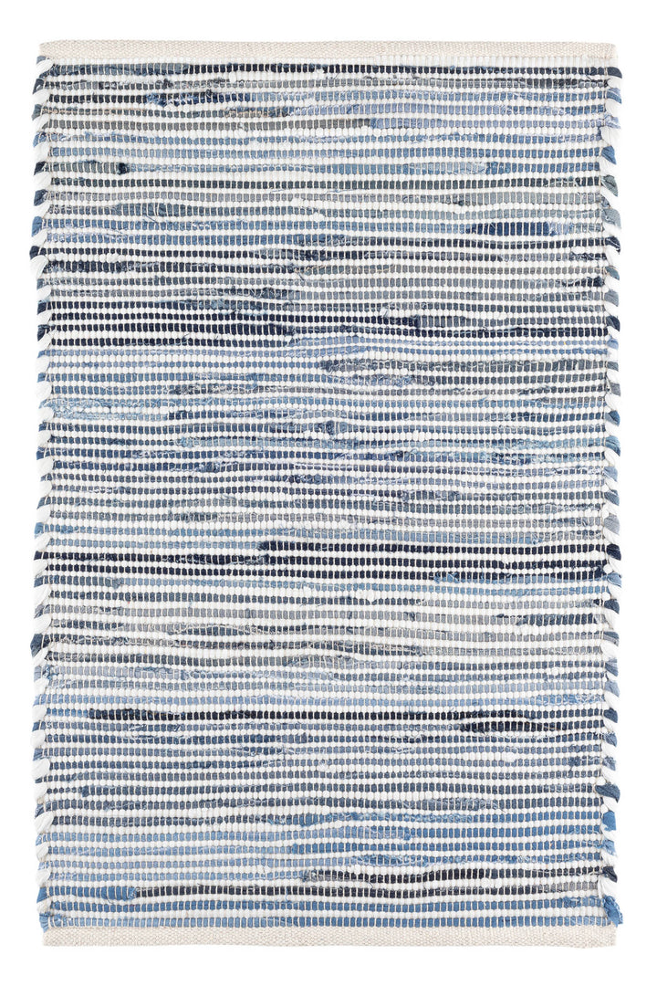 Keep style simple with indigo strata of repurposed cotton jeans and twill fabrics. Simple stripes in all shades of Denim, Indigo, Ice and White rag bring a casual, cottagey note to any spot where you need a little underfoot padding.