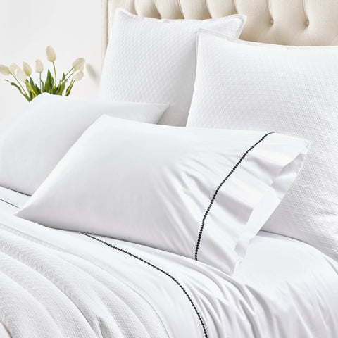 A line of embroidered dots accents these crisp white cotton percale pillowcases. Designed to add a little something extra to the turn-back reveal of your bed for a European Luxury Hotel vibe.