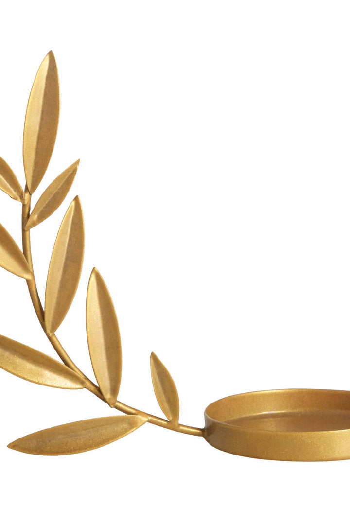 Find a place at your table or on the mantel for this pretty and unusual asymmetric candle holder. With unfurling leaves, a single branch is cast in bronze-finished iron, elegantly reflecting a warm golden glow throughout the room. Comes in a set of four.