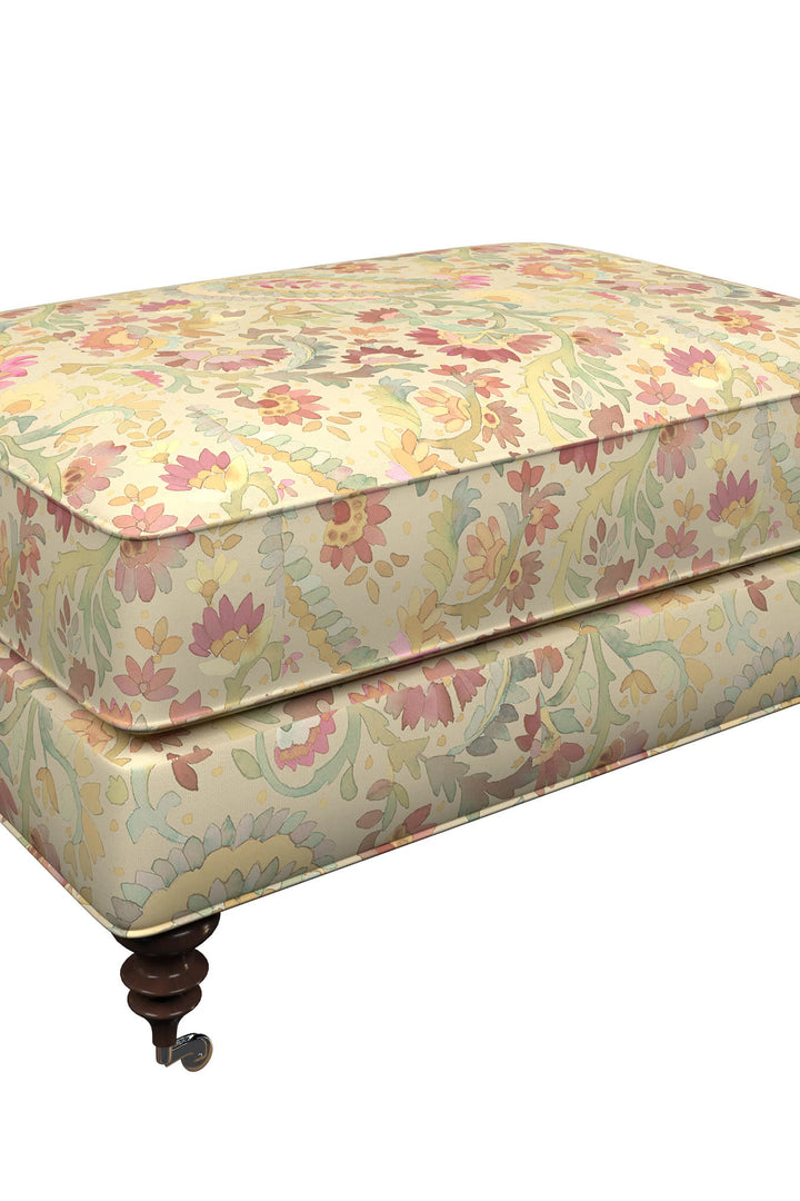Equally at home in a wood-paneled library or a modern urban living room, our Norfolk ottoman features a wide rectangular shape, plentifully padded top and stylish turned legs. Use it as pull-up seating or add a tray and call it a coffee table. Designed to complement our Norfolk chair for a cultured, sophisticated feel. Custom upholstered in your choice of designer fabrics. Exclusively available from Annie Selke.