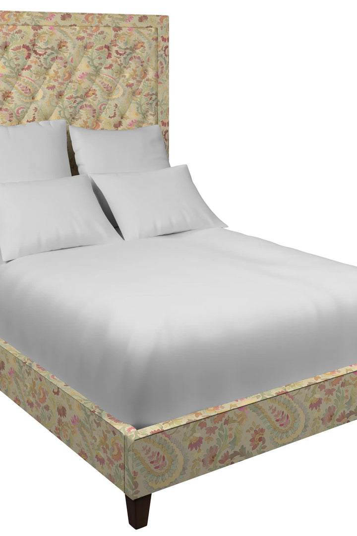This gorgeously upholstered bed grabs the attention with its dramatic height and clean-lined, square silhouette. The addition of intricate diamond tufting with buttons adds visual interest and depth to this trusted-and-true classic. Make it your own with your choice of fabric.