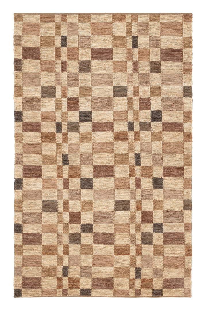 Connect to the earth with the relaxed aesthetic of a foundational rug, embodying a legacy of quality craftsmanship and elegant modernity. Soothing shades of calm, inspired by nature's harmony, form a bold rhythmic geometric composition. Durably woven with sustainable jute in a deeply textured, playful variegated patchwork. Timeless and contemporary, free-spirited and modern, this hard-working beauty is offered in a sophisticated palette of mineral-rich neutrals. Designed for us by Marie Flanigan, an award-winning interior designer, to reflect her signature style of timeless elegance and innovative simplicity.