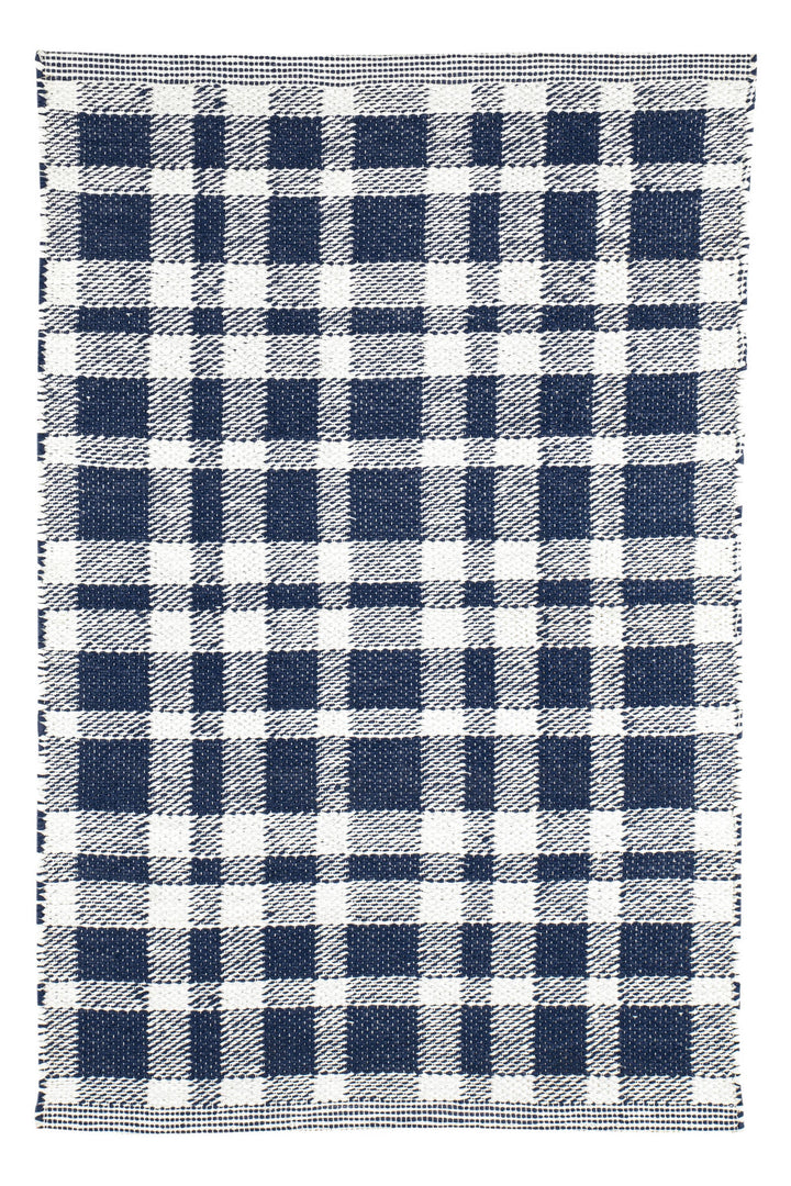 Tattersall Handwoven Indoor/Outdoor Rug | Navy