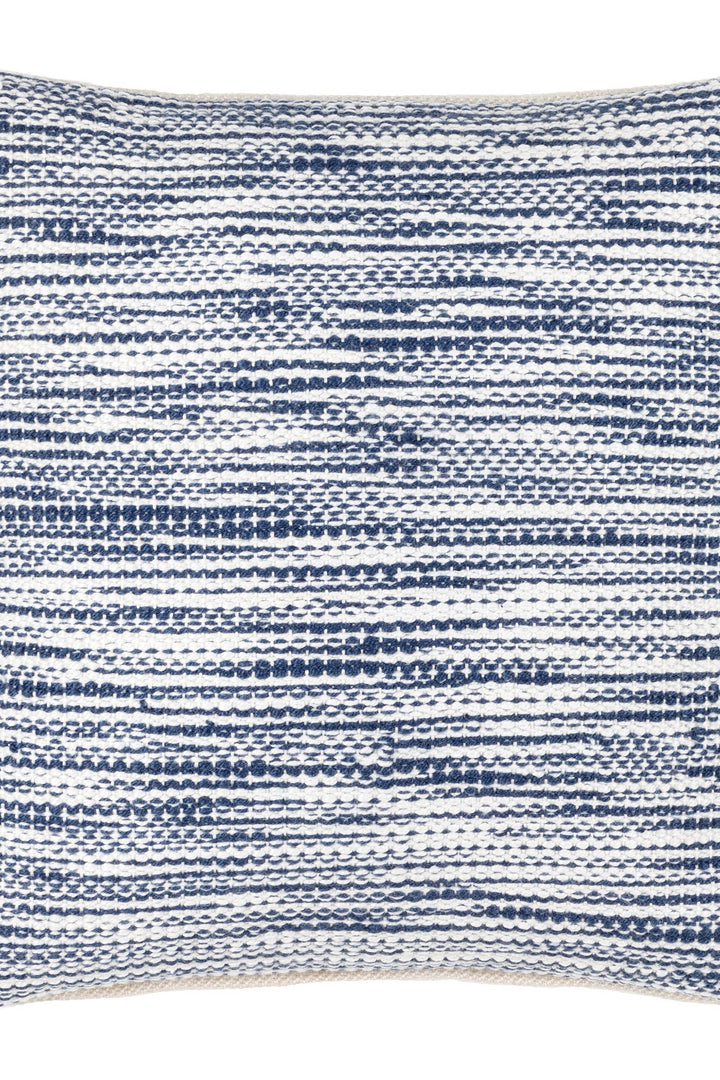 Styled for open-air living, whether ship or shore, this versatile soft-handed, rugged pillow presents fabulous texture and faded denim effect utilizing undulations of marled threads with a blanket stitch overlay. Lovingly crafted in sun, rain, dog and child-proof yarns for peace of mind.