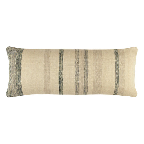 Structured and rugged with a smooth texture and a sophisticated neutral palette of stripes, this double lumbar pillow is made to highlight the natural beauty of sustainable jute fiber. Designed for us by designer Marie Flanigan to reflect her signature style of timeless elegance and innovative simplicity.