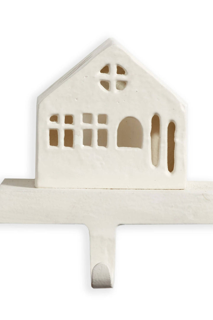 Mixing modern and timeless style, this White Chalet Stocking Holder embodies the feeling of a cozy winter holiday. Made of metal and aluminum, it uses its own weight to hold your stockings, and all the goodies Santa will bring.