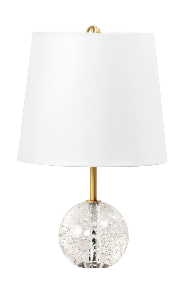 The perfect combination of compact yet striking, this round crystal table lamp sets the tone with style and grace. An oversized tapered drum shade adds height and drama, fitting wonderfully in tight spaces. This fixture provides welcoming illumination while also adding a contemporary, airy element to the overall style. Designed with you in mind, Rugs USA provides an LED bulb, allowing your lighting to take center stage effortlessly.<br><br><b>Dimensions</b><ul>