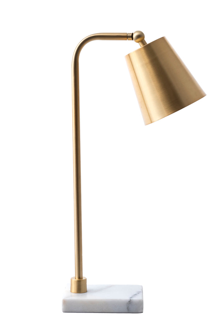 Enrich the look of any tabletop with this beautifully crafted modern and mid-century style table lamp. A strong fusion of well-constructed iron paired with marble base allows for flow and creativity in your space. This table lamp embodies simplicity and disperses warm, ambient lighting. Designed with you in mind, Rugs USA provides an LED bulb, allowing your lighting to take center stage effortlessly.<br><br><b>Dimensions</b><ul>
