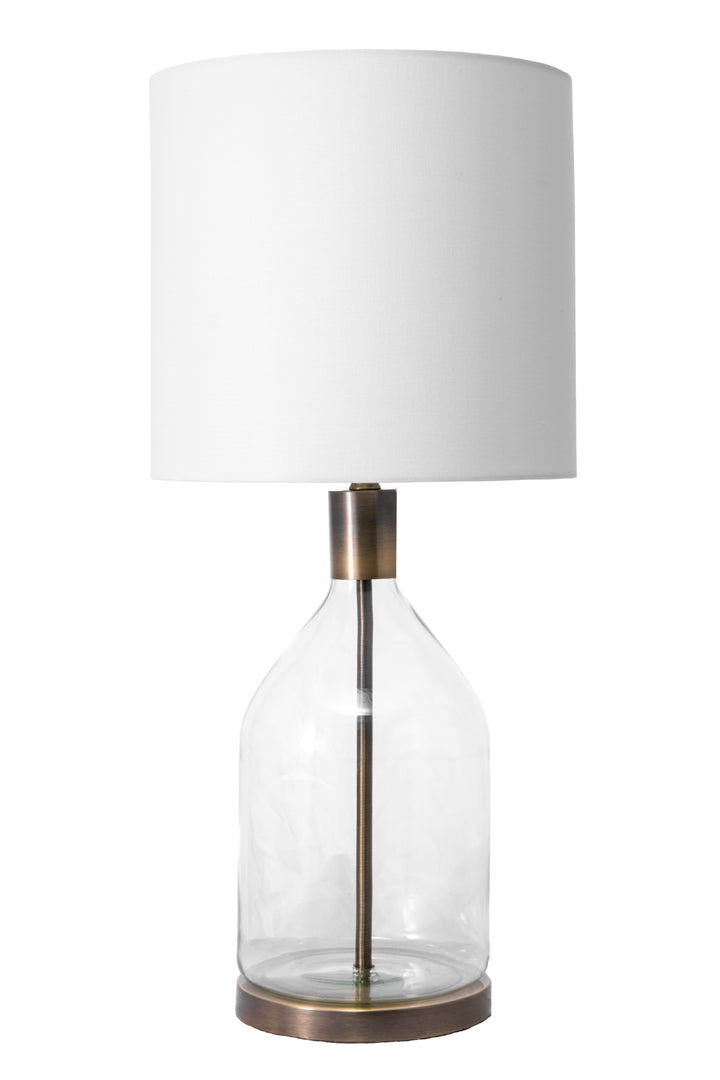 Industrial design shines through in this gold-tone glass, reflective table lamp. Create the coziest corner with accent lighting. Pair with modern and sharp decor accents to enhance your living space. Designed with you in mind, Rugs USA provides an LED bulb, allowing your lighting to take center stage effortlessly.<br><br><b>Dimensions</b><ul>