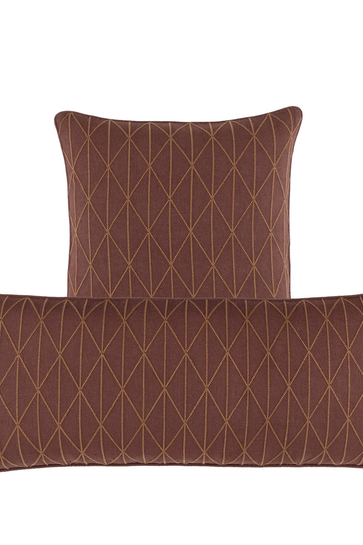 A union of subdued raw linen is energized by a crystalline gridwork of silky embroidery. Combining softness and structure, this sophisticated cushion cover is at once organic and highly disciplined. Offered in a color palette drawn from nature, blending comforting neutrals with rich tones. Designed for us by Marie Flanigan, an award-winning interior designer, to reflect her signature style of timeless elegance and innovative simplicity.