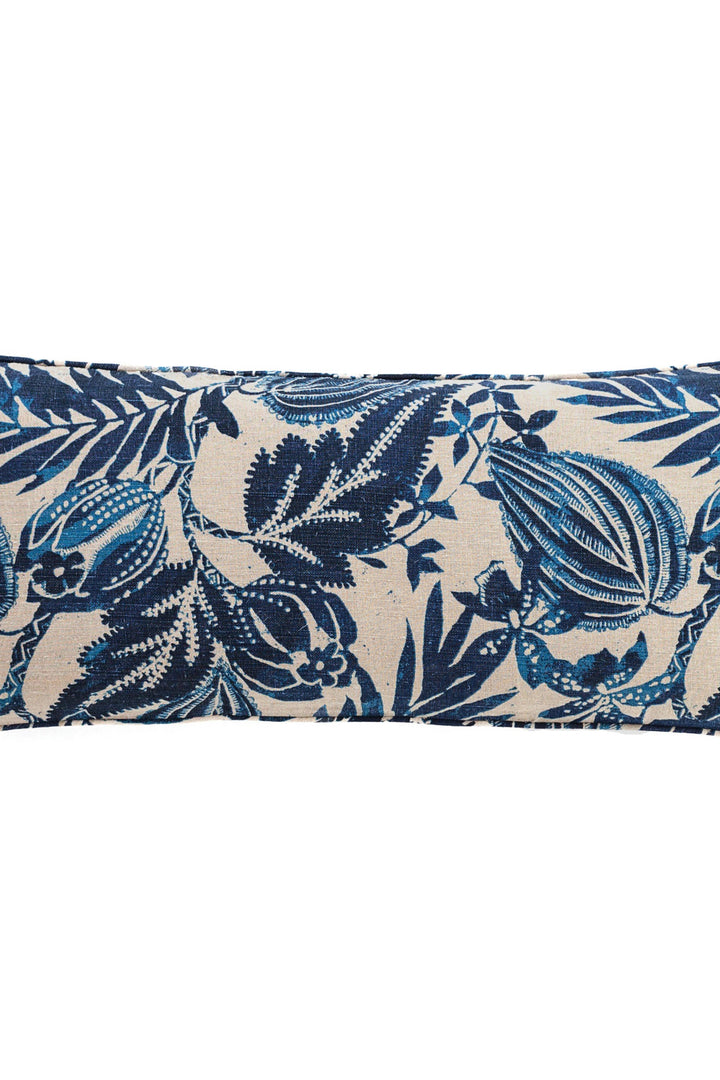 Inspired by Colonial era woodcuts, large-scale inky black fronds, buds, and pods are digitally printed onto thickly woven rustic natural linen, then washed and tumbled to sublime perfection. Our double boudoir decorative pillow features self-piped seams and natural linen back.
