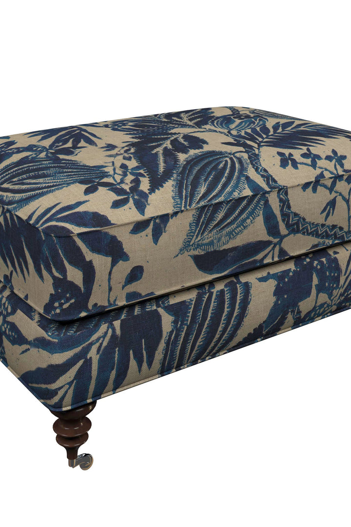 Equally at home in a wood-paneled library or a modern urban living room, our Norfolk ottoman features a wide rectangular shape, plentifully padded top and stylish turned legs. Use it as pull-up seating or add a tray and call it a coffee table. Designed to complement our Norfolk chair for a cultured, sophisticated feel. Custom upholstered in your choice of designer fabrics. Exclusively available from Annie Selke.