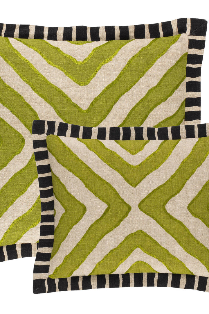 Arrows Linen Embroidered Decorative Pillow Cover | Green/Natural