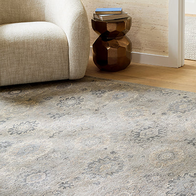 Part of our Masterpiece Collection that draws from the rich heritage of traditional, Turkish Oushak rugs. Woven and hand-knotted by master weavers in India, every detail – from the intricate motifs down to the finest yarn – speaks to the unparalleled quality and artisan craftsmanship of these vintage-inspired rugs. The Athens Sky Hand Knotted Wool Rug instantly draws attention with its captivating medallion designs and a soothing mix of sophisticated, muted hues. Beautifully crafted to endure and wonderful to walk on, you’ll cherish this piece for years to come.