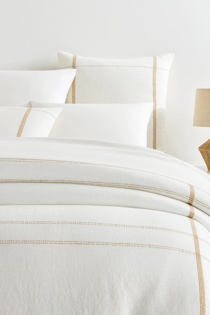 Inspired by antique, homespun grain sacks, the Atherton Duvet Cover boasts a large windowpane check that will add a modern farmhouse aesthetic to any decor. Subtly engineered to resemble hand stitching, the heirloom flaxen quality softens with every wash, with very little wrinkling, and is made to last a lifetime.