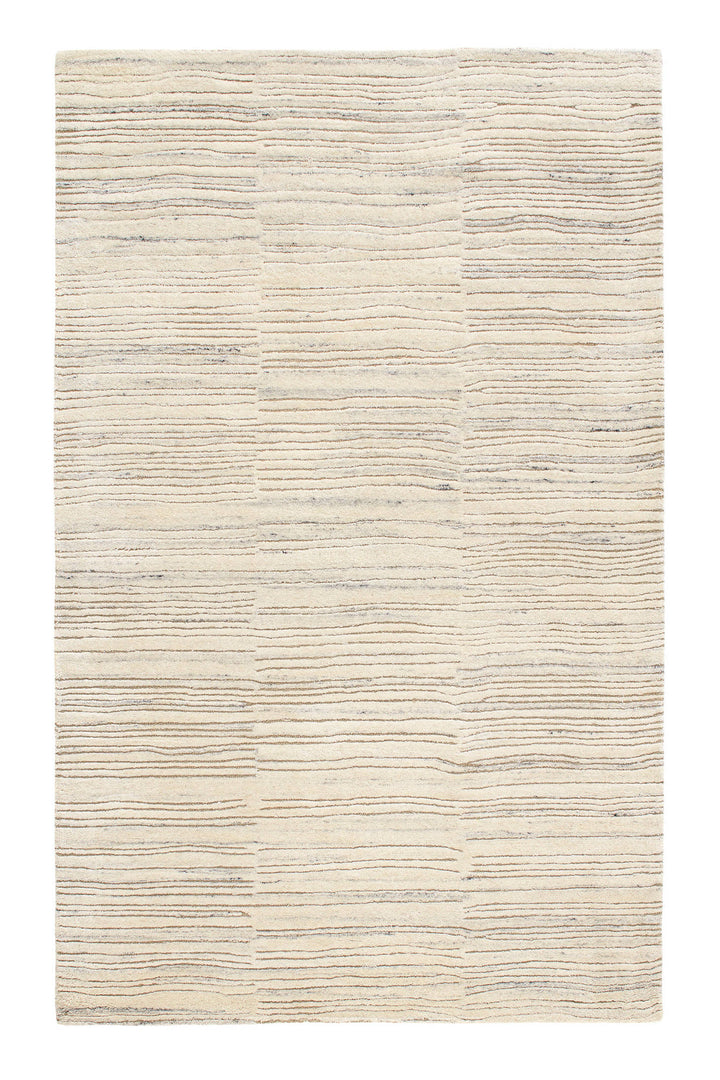 Inspired by substrate layers of sandstone sediments that chronicle the millennia, this luxurious, irregularly striped wool rug will stand the test of time. The subtle degradations of a natural undyed fleece pile enhance the finely observed irregular striping in a softly mineral palette. The subtle beauty of the higher sheared tufts emphasizes the contrast of the densely looped stripes. A signature motif of Marie Flanigan, an award-winning interior designer. This rug is a part of our design collaboration with Marie to produce a lifestyle collection that reflects her signature style of timeless elegance and innovative simplicity.