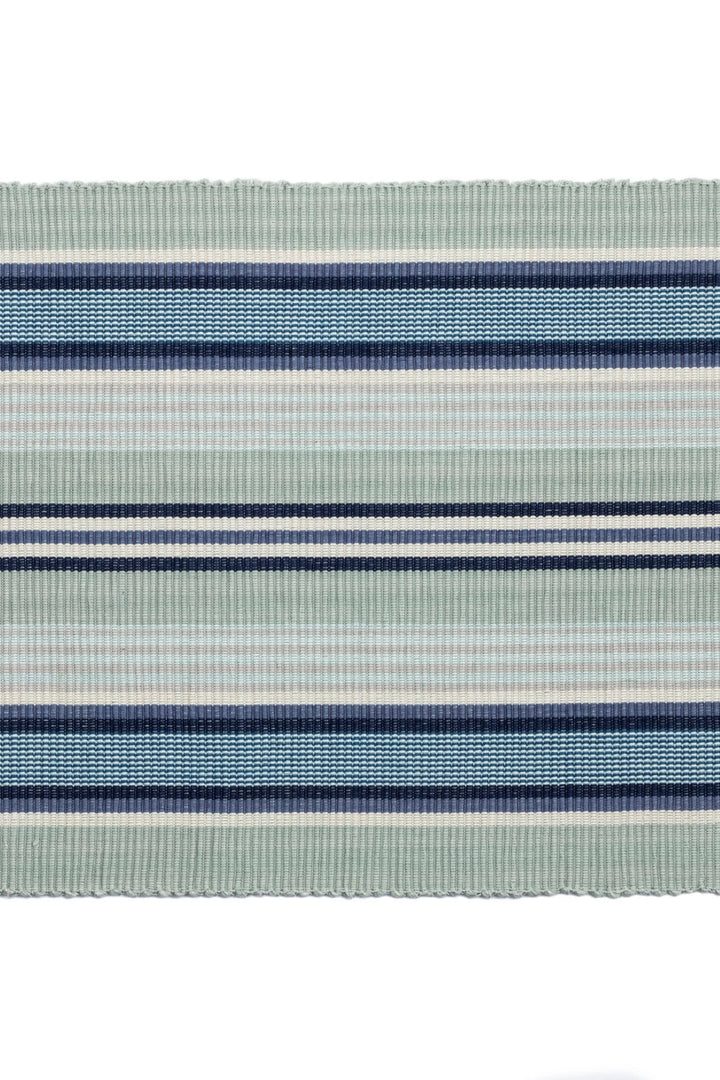 Show your stripes with our handwoven cotton placemats. Island stripes in aquatic shades of Blues, Greens, and Greys intersperse with variegated Indigo and White deck stripes – inspired by our best selling Barbados flatwoven cotton rug. Designed to coordinate with our oversized napkins and complement rustic farmhouse and modern marble tables alike. Sold as a set of four.