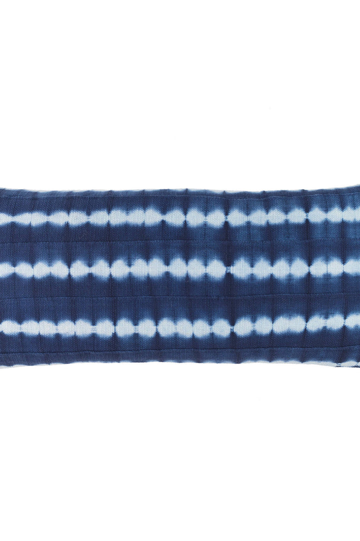Two magnified shibori stripes make a bold statement in indigo and natural cotton. Each pillow is unique as the design is individually hand pleated and resist dyed by artisans.