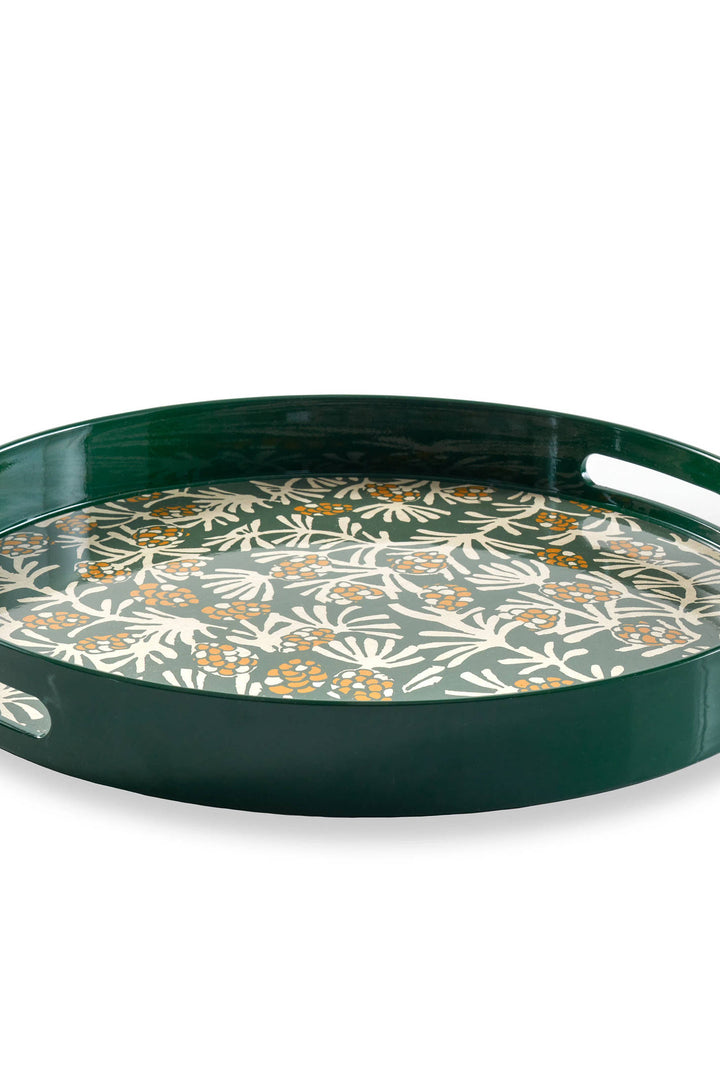 This pinecone accent tray features an exclusive, winter-themed design inspired by a block print pattern our designers discovered and loved. Featuring slotted handles and a heat- and moisture-resistant surface, it’s perfect for serving or for decoration. It also makes a fabulous gift!