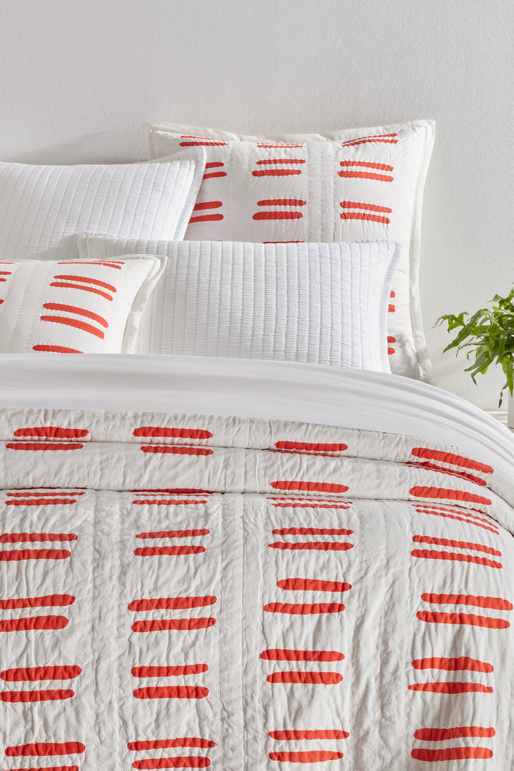 A modern twist on traditional, this Kantha stitched all-cotton coverlet features dashes of bold color outlined with hand quilting for extra emphasis. A perfect lightweight layer for all seasons.