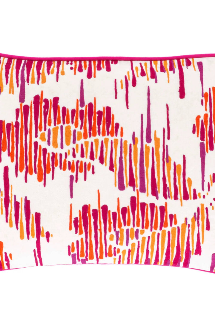 It's the details that tell the story; the slubby textured linen weave, the zing of the color-matched piped edge, the chunky matte hand embroidery, a tropical floral so surf-worn, sanded it has become abstracted. Another design from Kit Kemp to throw into your mix. Her wish for this collaboration with Annie is to encourage personal self expression, champion color, pattern and craft and be proudly eccentric and eclectic. Co-owner and Creative Director of Firmdale Hotels, whose renowned boutique hotels in London and New York are known for their warm and welcoming environments, interiors that are layered with whimsy, art, pattern, color and craftmanship.