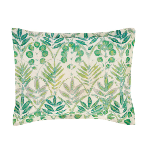 Into the woods with this forest inspired medley of verdant leaves, rendered in painterly watercolors and digitally printed for superior reproduction. Duvet cover and matching sham feature Juniper, Sprout, Misty Green and Chartreuse fanning on an ivory ground. The cotton and flax blend base cloth is specially developed for the softness and comfort of cotton with a dash of the textural drape of rustic linen. .