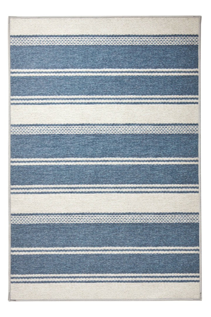 Bowman Stripe Machine Washable Rug | Blue