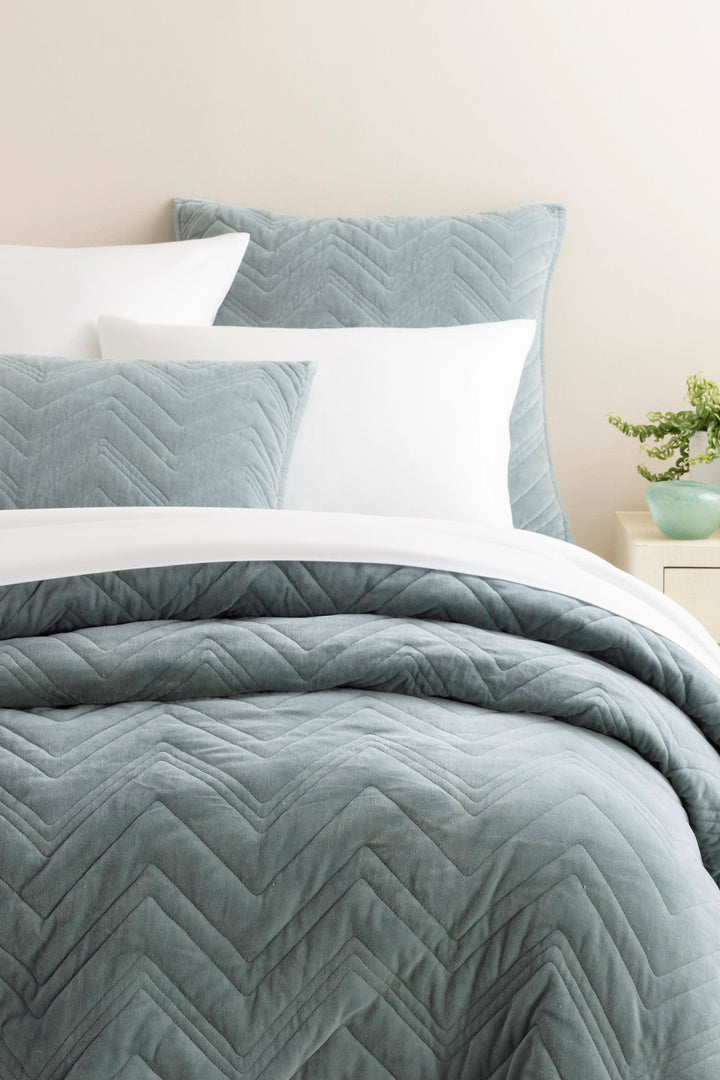 Variegated chevron stitching adds vintage glamor to sueded velveteen in this excellent lightweight layer. Softly sandwashed pure cotton for a perfectly smooth matte hand, lightly filled and reversing to a dyed-to-match cotton voile back.