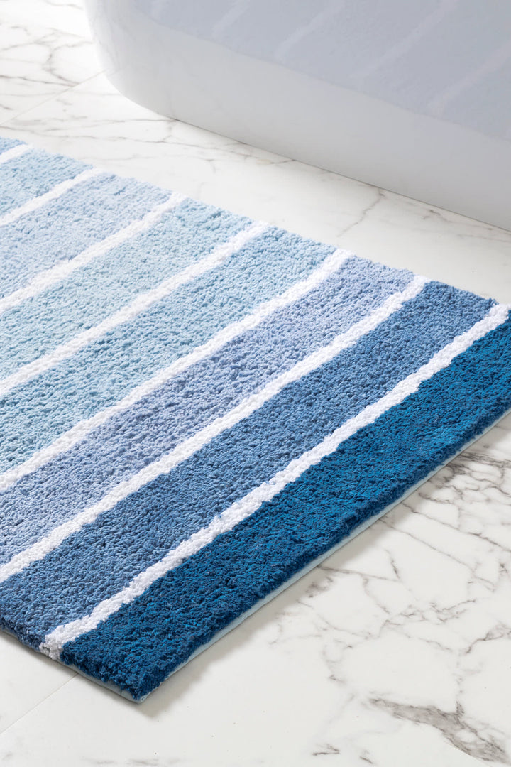Have you got that happy feeling? Dance into your day with our luxe and lively bath rugs. Step out of the shower and hit refresh with ombréed variegated stripes in watery hues. Tufted for cloud-like, thick, thirsty softness from a densely cushy and substantial long-staple cotton. Treat yourself to bold, spa-like plushness every day.