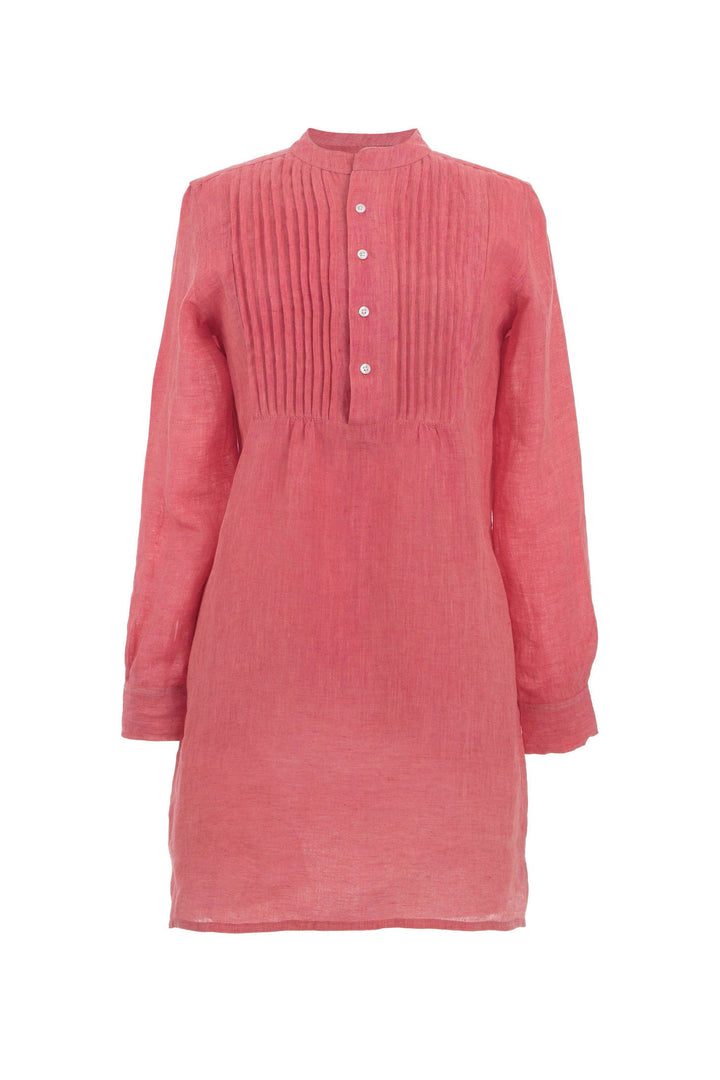 Chambray Pleated Linen Tunic | Pink