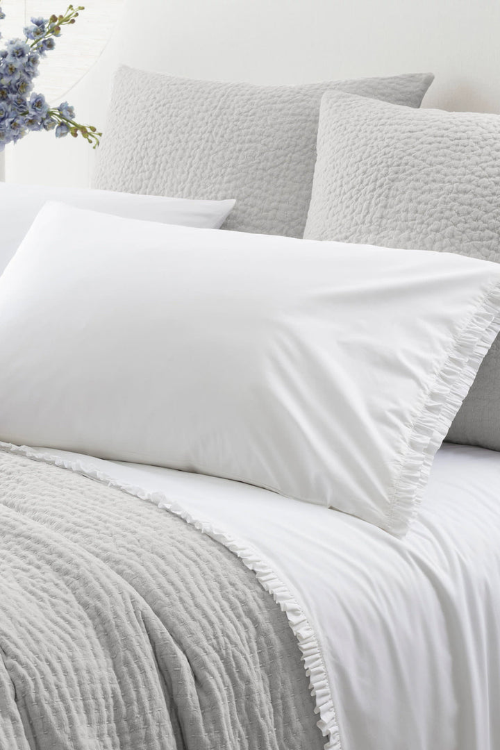 Bedtime doesn't get any sweeter than this combination of a smooth cotton sheet set and a flirty ruffle. 200 thread count.