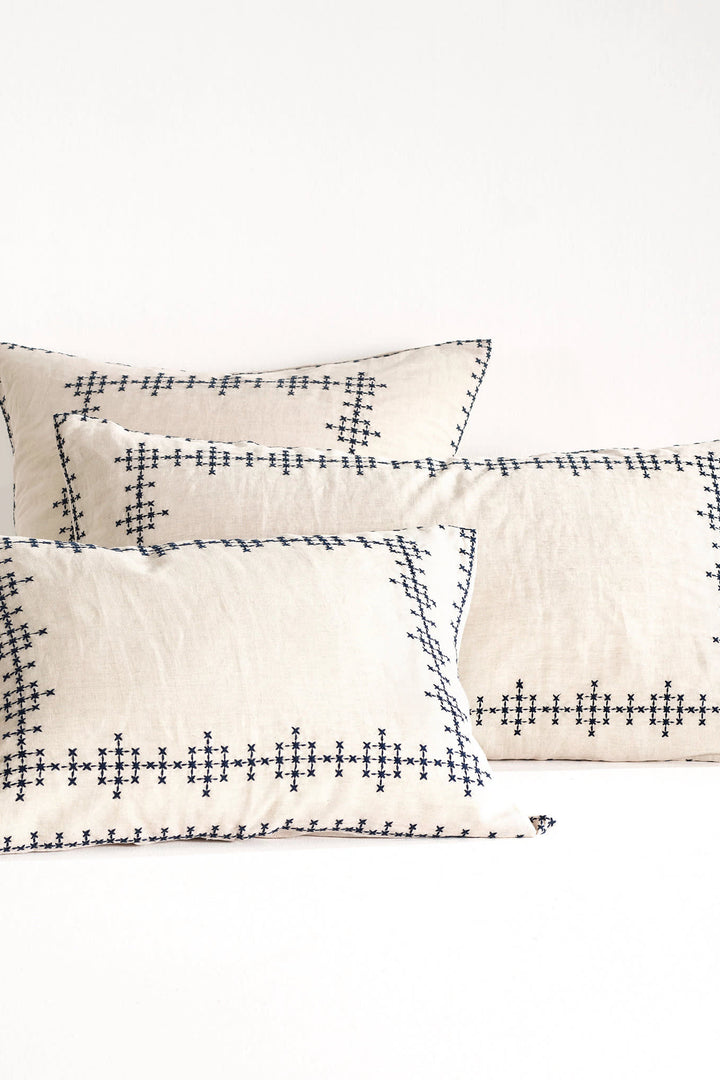 Cross-Stitch Linen Sham | Navy