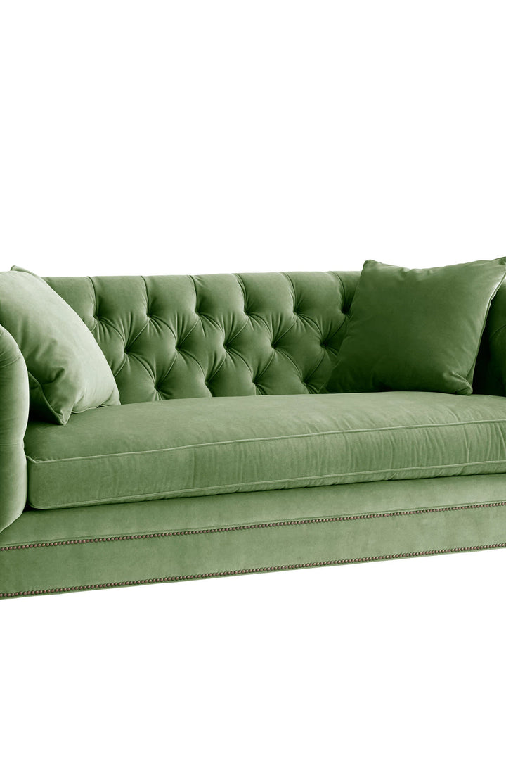 Inspired by the classic Chesterfield Sofa, our Richmond Sofa has all the time-honored details: straight back, button tufting, rolled arms, and graceful turned legs. We've added nailhead trim to punctuate the timeless silhouette. Haven cushions feature an eco-friendly soy-based foam core surrounded by down and feather fill for luxurious comfort. Custom upholstered in your choice of designer fabrics. Exclusively from Annie Selke.