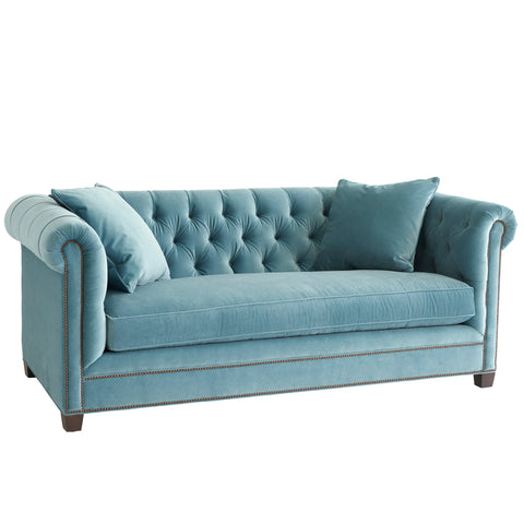 Inspired by the classic Chesterfield Sofa, our Richmond Sofa has all the time-honored details: straight back, button tufting, rolled arms, and graceful turned legs. We've added nailhead trim to punctuate the timeless silhouette. Haven cushions feature an eco-friendly soy-based foam core surrounded by down and feather fill for luxurious comfort. Custom upholstered in your choice of designer fabrics. Exclusively from Annie Selke.