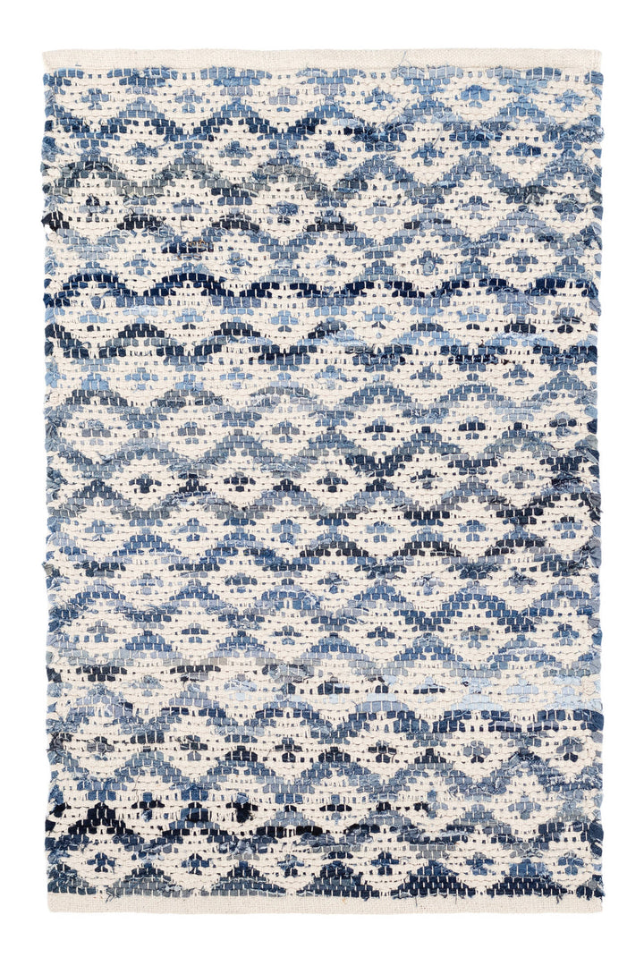 Denim Rag Diamond Handwoven Cotton Rug | Ivory