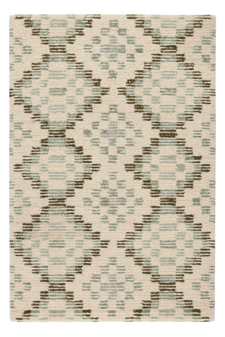 This beautiful, classic wool carpet embodies a fusion of traditional and modern geometric patterns that invite you to walk barefoot on its luxuriously plush wool pile. Hand-hooked and sheared to a velvety raised corduroy rib, then micro-striped with alternating solid white hooked loops to create an optical muting effect.