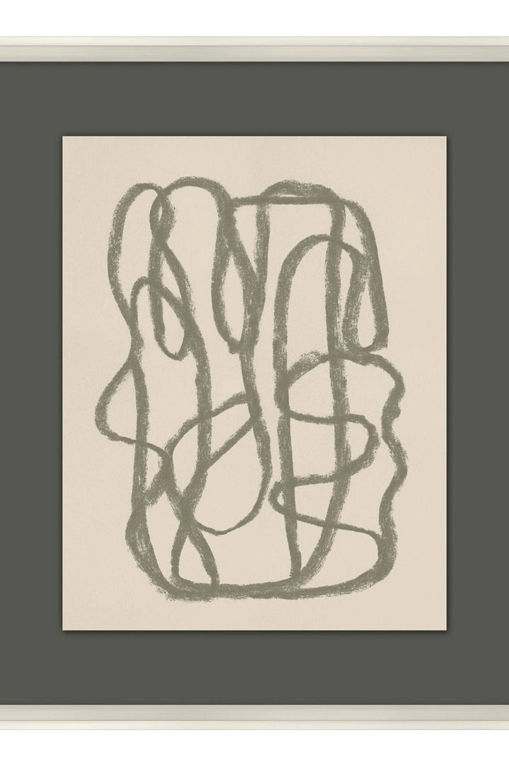 This abstract giclee artwork is designed with a silver frame and floated on a dark mat to bring a touch of modern artistry to any space.