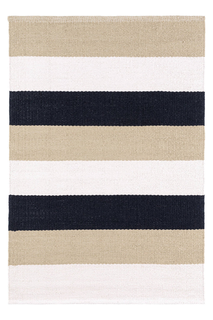 The Doolittle Handwoven Outdoor Rug features bold, horizontal stripes that serve as an eye-catching foundation in any space, indoors or out. Made of matte PVC fabric that is light but dense, it lies flat, stays put, and is water- and stain-resistant. Terrific for outdoor spaces like patios, porches, and decks, it's an easy-to-clean, quick-drying options.