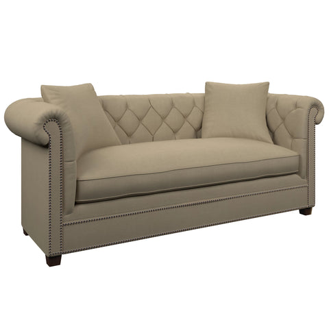 Inspired by the classic Chesterfield Sofa, our Richmond Sofa has all the time-honored details: straight back, button tufting, rolled arms, and graceful turned legs. We've added nailhead trim to punctuate the timeless silhouette. Haven cushions feature an eco-friendly soy-based foam core surrounded by down and feather fill for luxurious comfort. Custom upholstered in your choice of designer fabrics. Exclusively from Annie Selke.