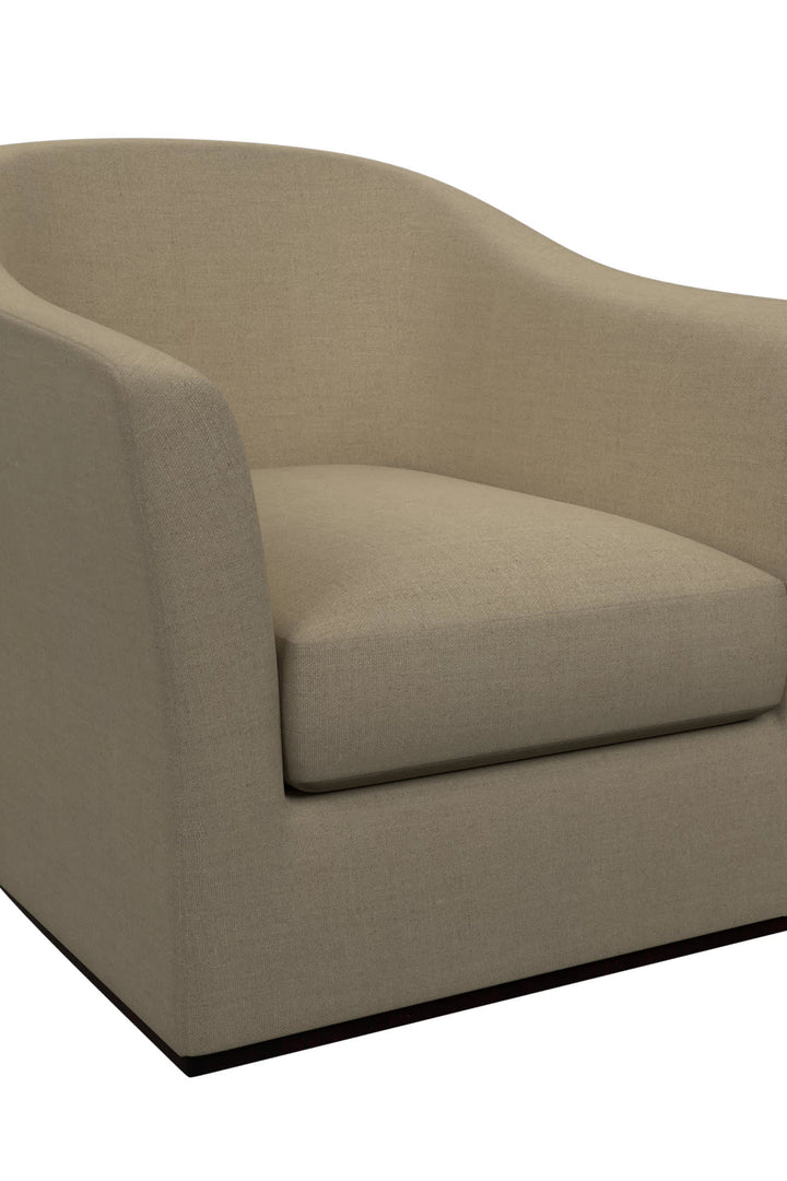 Luxuriate in a chic chair with an important extra. Our Thunderbird Swivel Chair turns so you can rotate to join the conversation, or change your view. The classic shape works in traditional or modern rooms. Cloud 9 cushions provide the ultimate in comfort. Tobacco finish on maple trim. Upholstered in your choice of designer fabrics. Exclusively from Annie Selke.