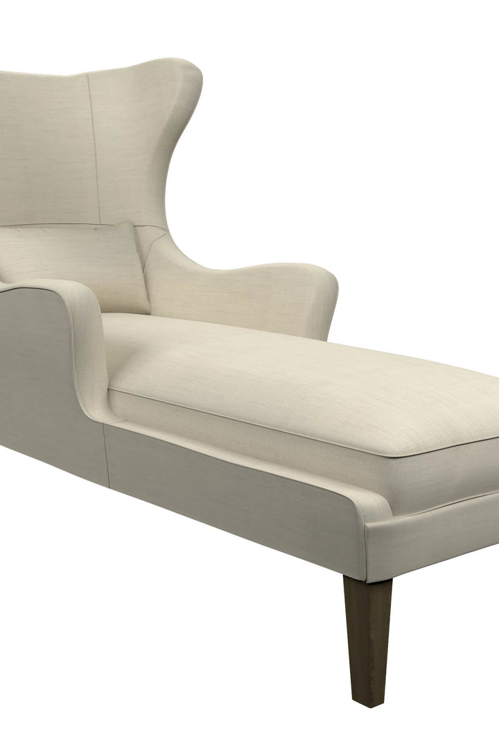 The chaise gets a dramatic update. Our Mirage Chaise has a welcoming, extra tall back and arms the perfect height for relaxing. Cloud 9 cushions provide exceptional comfort. Lumbar pillow for extra support. Maple legs with smoke finish. Also available as a <a href="/c/mirage-chair">Chair</a>. Upholstered in your choice of designer fabrics. Exclusively from Annie Selke.
