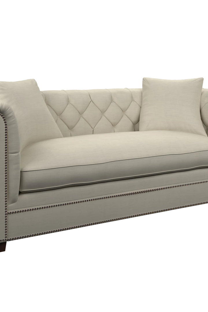Inspired by the classic Chesterfield Sofa, our Richmond Sofa has all the time-honored details: straight back, button tufting, rolled arms, and graceful turned legs. We've added nailhead trim to punctuate the timeless silhouette. Haven cushions feature an eco-friendly soy-based foam core surrounded by down and feather fill for luxurious comfort. Custom upholstered in your choice of designer fabrics. Exclusively from Annie Selke.
