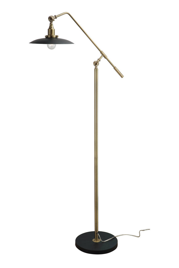 A little light, a little magic: A classic retro inspired Mid Century Modern floor lamp, celebrating form and function in black and brass.