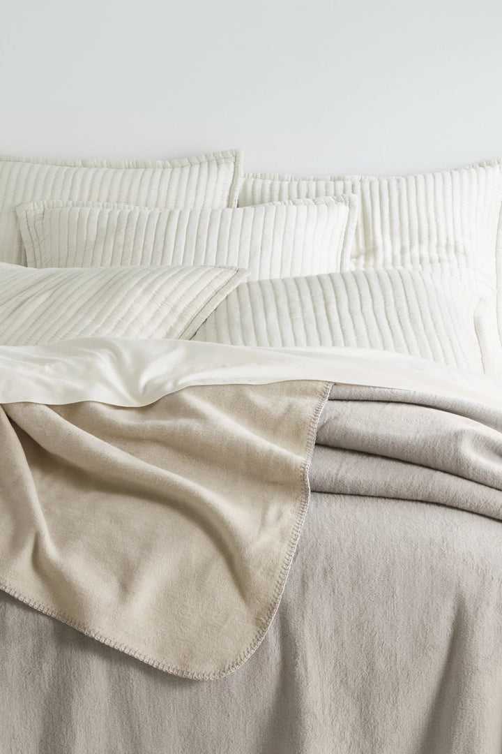Design your coziest, comfiest bed with the Faro Fleece Blanket. Made in Portugal of the finest brushed cotton, it’s unbelievably soft and warm. Blanket-stitch detailing and rounded corners add a designer touch. Available in subtle natural colors, this will become your go-to layer for colder months.