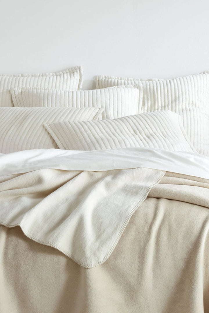 Design your coziest, comfiest bed with the Faro Fleece Blanket. Made in Portugal of the finest brushed cotton, it’s unbelievably soft and warm. Blanket-stitch detailing and rounded corners add a designer touch. Available in subtle natural colors, this will become your go-to layer for colder months.