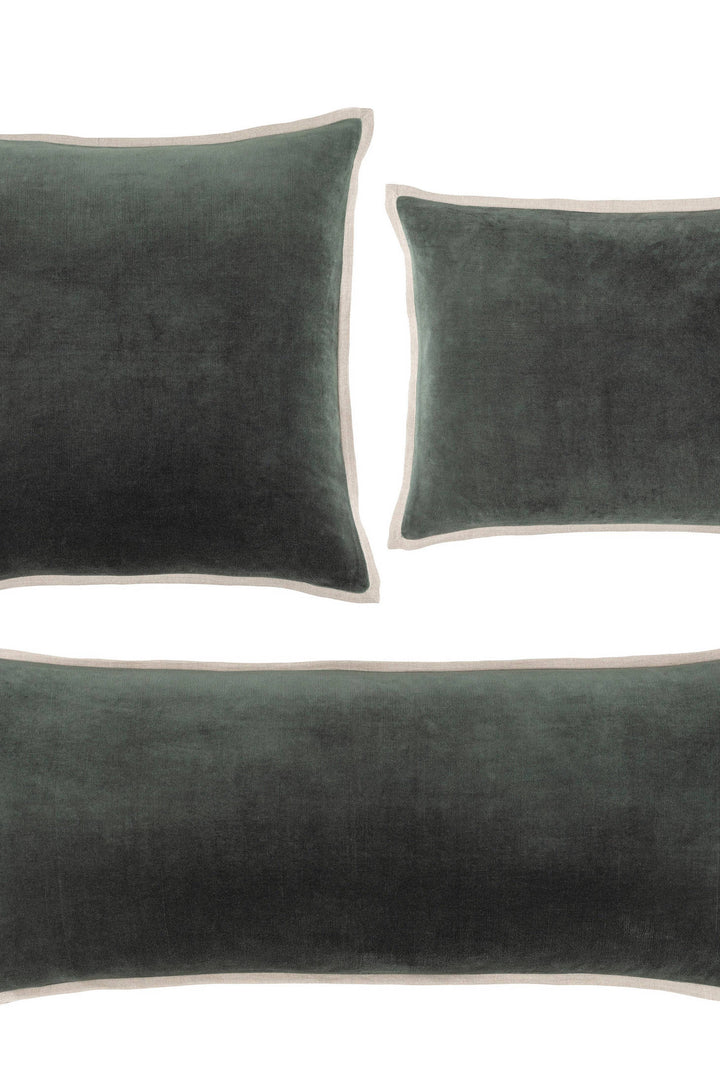 - Velvet front dyed to match linen reverse