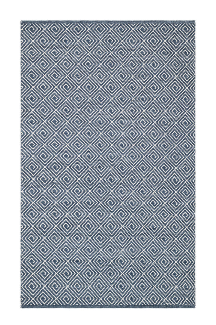 Geo Diamond Handwoven Wool Rug | Blue/Ivory