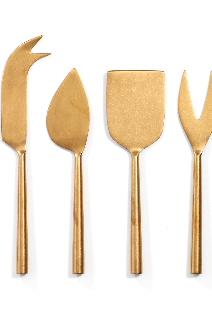 Serve up your favorite cheeses with the Gold Hand Forged Cheese Knives. With clean lines and a metallic gold finish, they are both stylish and durable, and make a beautiful addition to any kitchen. Sold as a set of 4 in a sturdy black craft box perfect for gifting.